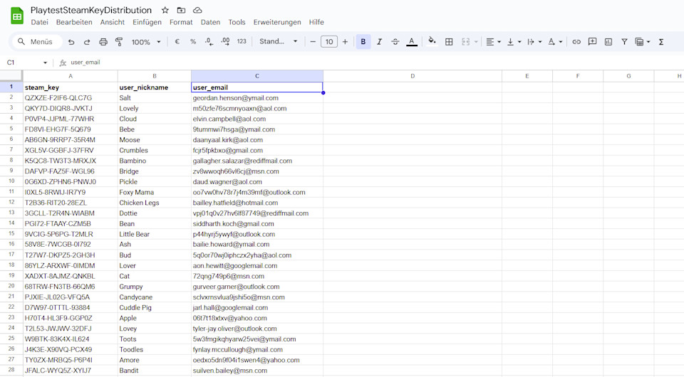 Nutzung der GoogleSheet-API, um einen Steam-Key für den Playtest abzurufen