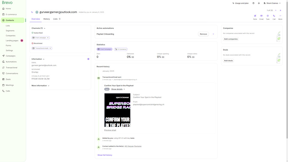 Verwendung der Brevo-API, um die E-Mail-Adresse und den Steam-Key zu meinem Newsletter hinzuzufügen
