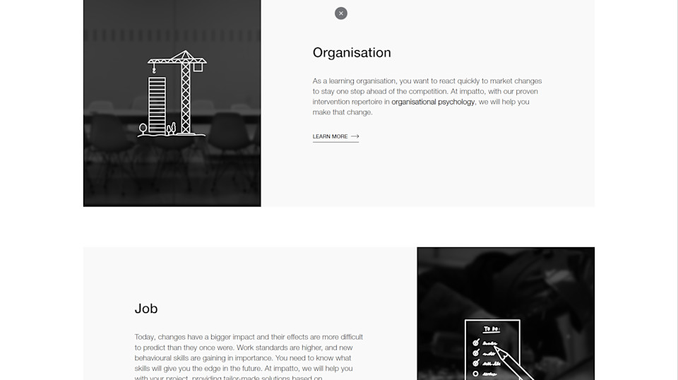Micro-animations (created with GSAP) enhance the professional and high-quality impression of the site
