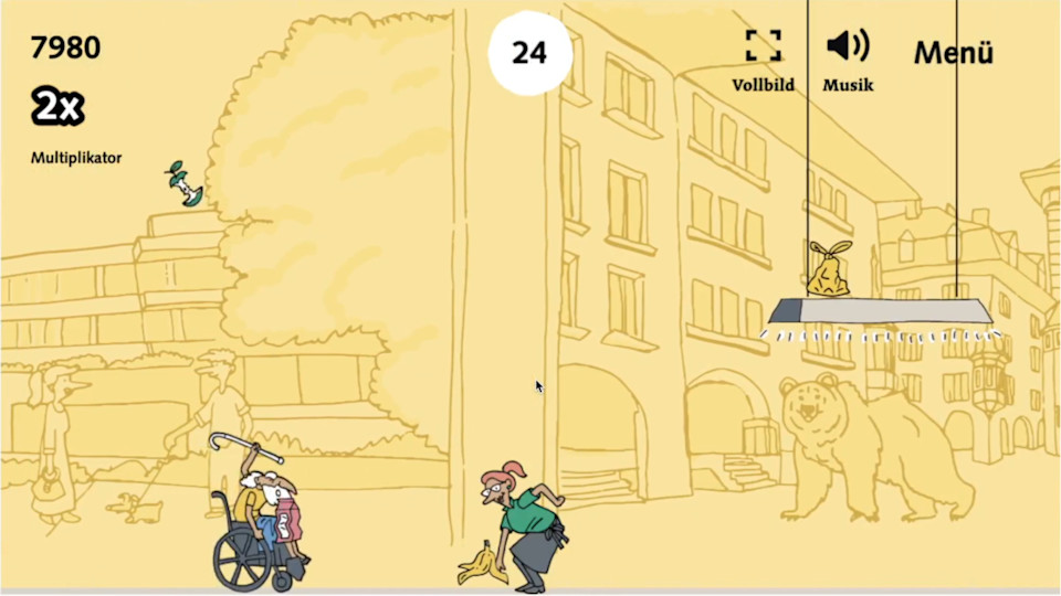 In the web agency Dunkel Design, where I worked on an hourly basis we created a 2D Jump/Run/Platform game in which you have to collect trash to gain points. The game was part of a campaign by a hospital group to raise awareness considering trash in and around their hospitals.
